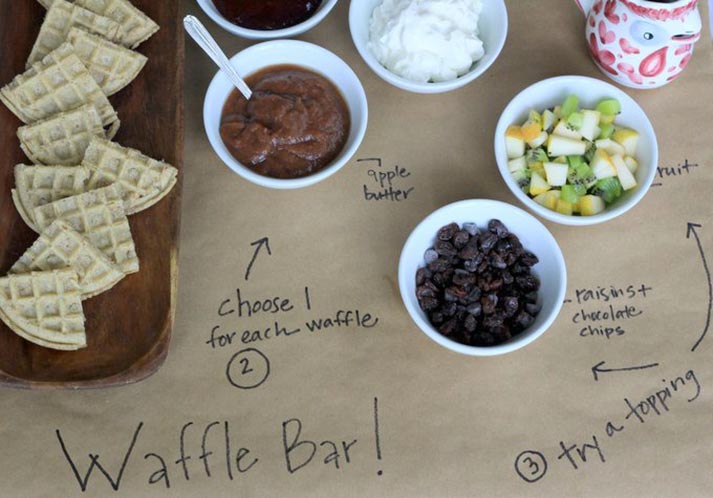 4. Scegli il posto del cibo sul buffet. Non è una cosa casuale! Sistema davanti e in bella mostra le cose che vuoi promuovere. Quelle meno care da preparare, ovviamente. Prova con la regola del tre: metti i vassoi in gruppi da tre, per attirare l’attenzione e non essere banale. Oppure prova con le piramidi, disponendo su più livelli oppure creando uno schema piramidale sul tavolo.