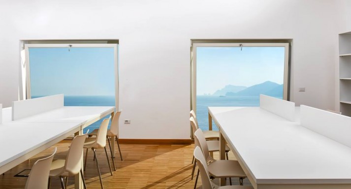 Arrivato in aula il primo giorno, vengo accolto dal sorriso coinvolgente di Chiara, la referente del Distretto Turistico Costa d’Amalfi, ente che ha promosso l’evento. La sala della Biblioteca Pane è moderna, con vista sul mare. Magnifica.