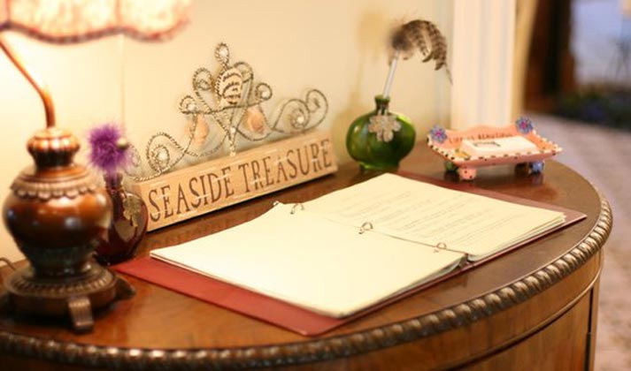 E i dettagli? Il guest book nella foto ci piace molto, perché fa subito venire voglia di lasciare un messaggio ma allo stesso tempo arreda.